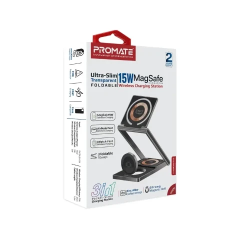 شارژر بیسیم پرومیت مدل Promate LUCIDFOLD-TRIO با سه درگاه شارژ