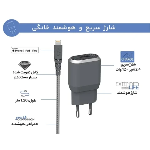شارژر دیواری فورس مدل FPCSMFIN1.2MG به همراه کابل لایتنینگ