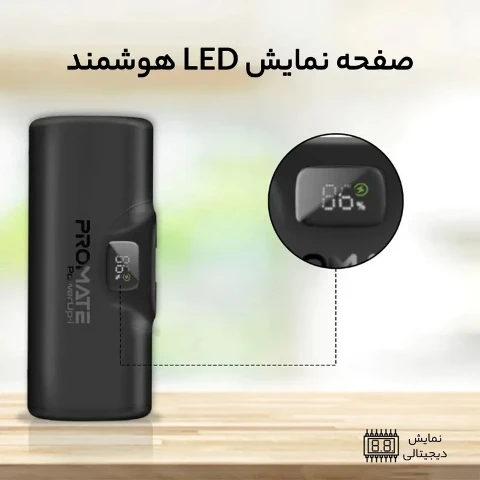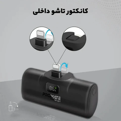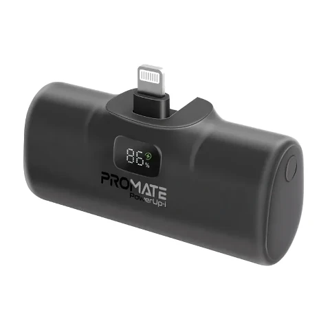 پاوربانک فوق کوچک پرومیت مدل POWERUP-I.BLACK به ظرفیت 5000 میلیآمپرساعت با کانکتور لایتنینگ داخلی