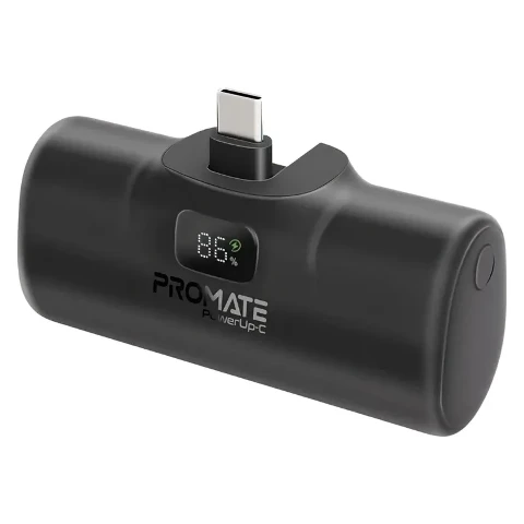 پاوربانک فوق کوچک پرومیت مدل POWERUP-C.BLACK به ظرفیت 5000 میلیآمپرساعت با کانکتور USB-C داخلی