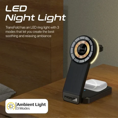 Promate 3-in-1 Wireless Charger TRANSFOLD.BLACK