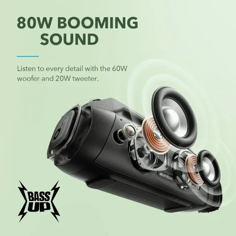 قابلیت هاقابلیت BassUp / دارای دو ووفر 30 واتی و دو توییتر 10 واتی / بلوتوث نسخه 5.3 / پشتیبانی از PartyCast 2.0 / استاندارد IP67 / ورودی شارژر USB-C , استاندارد ضد آب: IP67 , پشتیبانی از اپلیکیشن soundcore